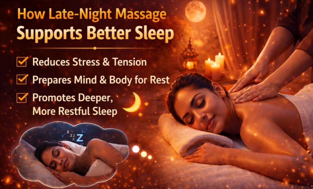 A late night body massage spa in Mumbai is a professional wellness centre that offers massage and relaxation services during late evening or night hours, usually after 9:00 PM, to support people with busy or irregular schedules.